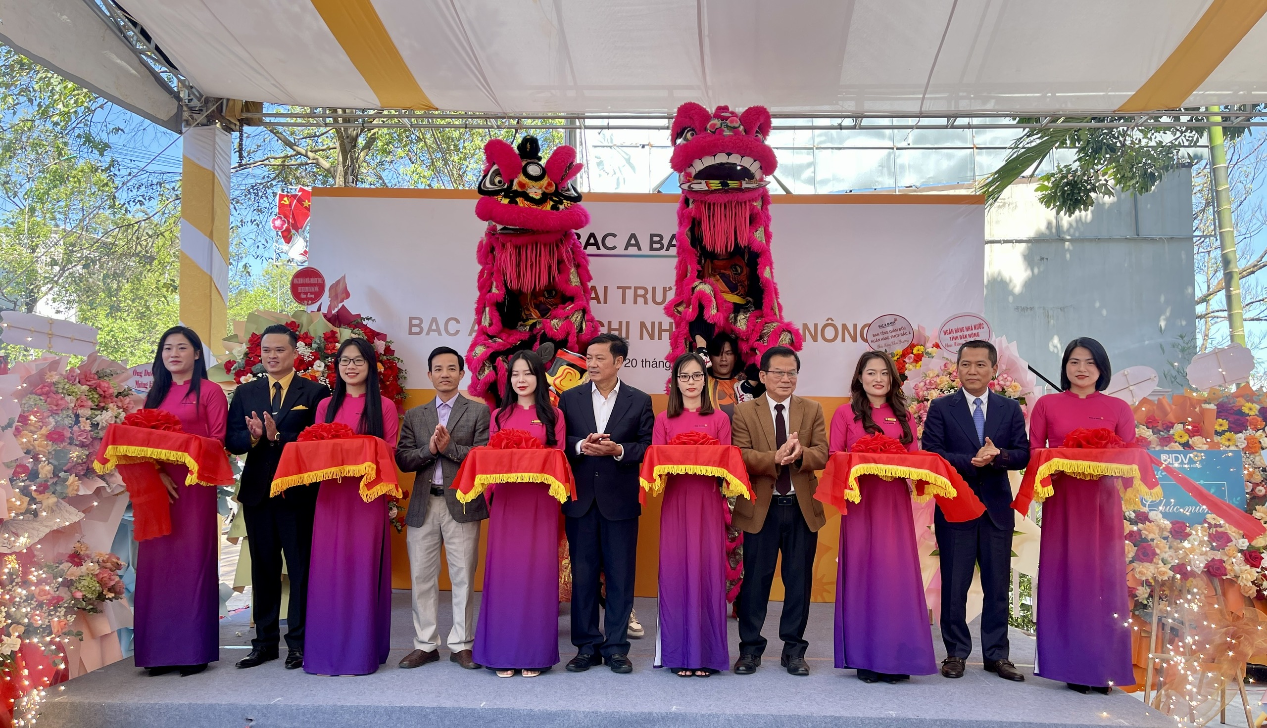 Buổi lễ khai trương diễn ra trong không khí trang trọng với sự tham gia của các đại biểu: ông Lê Trọng Yên - Phó Chủ tịch UBND tỉnh Đắk Nông; Ông Nguyễn Hồ Hữu - Phó Giám đốc Ngân hàng Nhà nước Việt Nam - Chi nhánh Đắk Nông; Ông Đỗ Tấn Sương – Chủ tịch UBND thành phố Gia Nghĩa, tỉnh Đắk Nông; Ông Đặng Trung Dũng - Phó Tổng Giám đốc Thường trực Ngân hàng TMCP Bắc Á và ông Chu Nguyên Bình - Phó Tổng Giám đốc Ngân hàng TMCP Bắc Á.