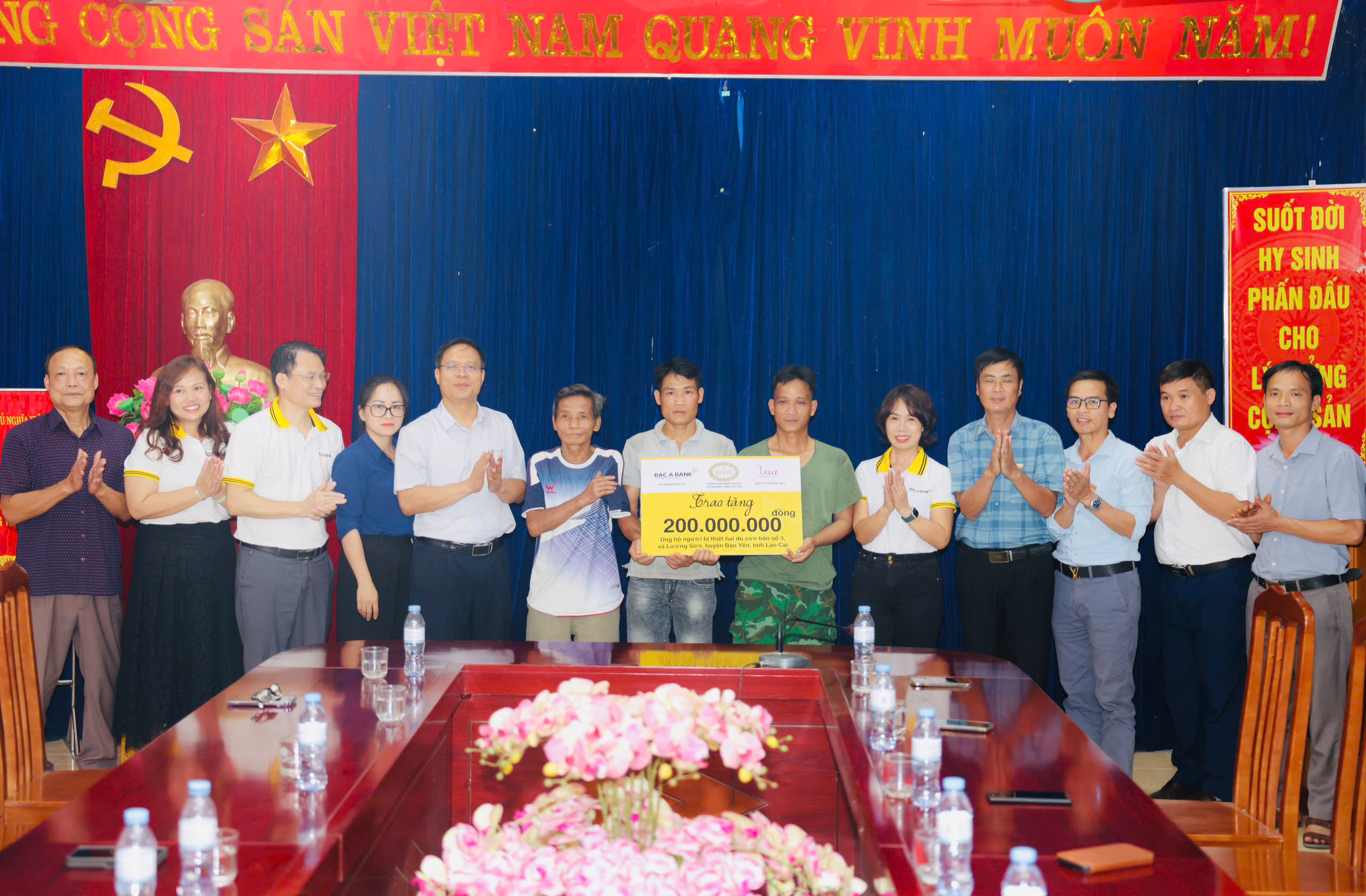 Đại diện cho Công đoàn cơ sở Ngân hàng TMCP Bắc Á cùng Công đoàn Ngân hàng Việt Nam, BAC A BANK Chi nhánh Lào Cai đã trực tiếp thăm hỏi, chia sẻ cùng bà con xã Lương Sơn tái thiết cuộc sống sau bão với số tiền 200 triệu đồng. Hành động này góp phần thiết thực động viên tinh thần và vật chất, giúp bà con xây dựng lại ngôi nhà và tiếp tục cuộc sống mới. Hy vọng rằng những đóng góp này sẽ là nguồn động viên, giúp bà con vững vàng hơn trước khó khăn, tiếp thêm sức mạnh để vượt qua gian nan, xây dựng lại cuộc sống ngày càng tốt đẹp hơn.