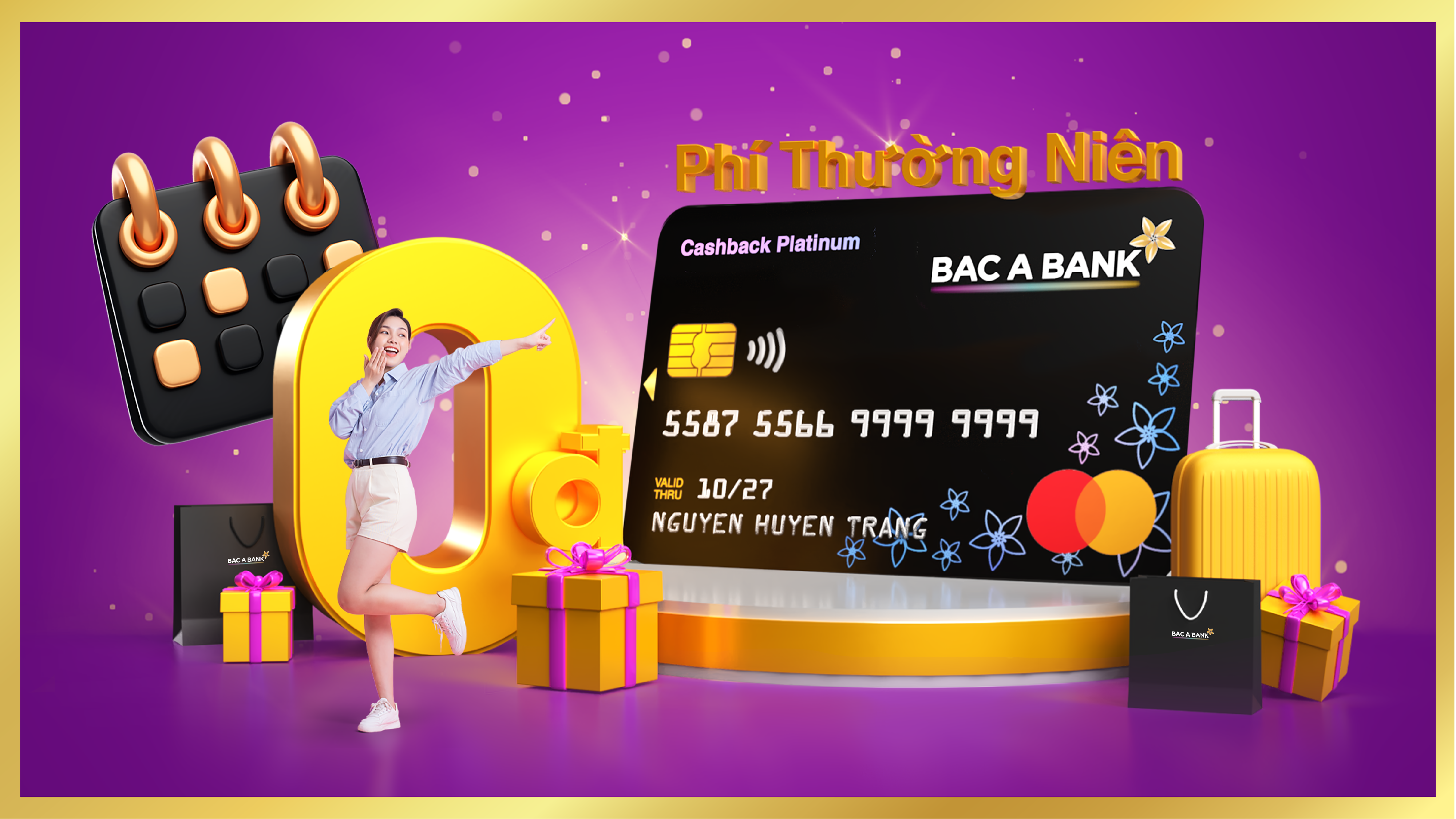 - Ưu đãi miễn phí thường niên năm đầu áp dụng cho cả hai hạng thẻ: Cashback Platinum và Rewards Gold/ khách hàng mở lần đầu tiên tại BAC A BANK, không áp dụng cho thẻ phụ.