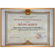 Thủ tướng Chính phủ tặng Bằng khen Thủ tướng Chính phủ tặng Bằng khen về thành tích trong công tác sưu tầm và giới thiệu kỷ vật kháng chiến, góp phần vào sự nghiệp xây dựng CNXH và bảo vệ Tổ quốc. BAC A BANK được xếp hạng 110 trong Top 500 Doanh nghiệp tƣ nhân lớn nhất Việt Nam (VNR500) năm 2009. BAC A BANK đƣợc xếp hạng 409 trong Top 500 Doanh nghiệp lớn nhất Việt Nam (VNR500) năm 2009.